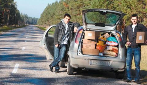 Brāļi Matīss un Oskars Barkovski mēro lielus attālumus, lai nogādātu pārtiku un dažādas mantas ģimenēm, kurām tās nepieciešamas.